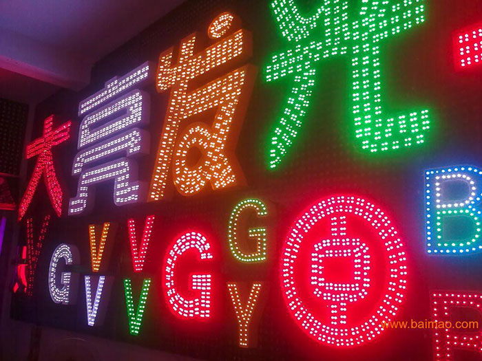 5、發光均勻:因為燈箱發光字受筆畫大小的限製,一般模組裝不下去的筆畫就沒有辦法,因而,會呈現一個字亮度分歧的當地。而外發光字是裝LED單顆燈上去,因而,穿孔發光字不存在這種現象,除非燈壞了。